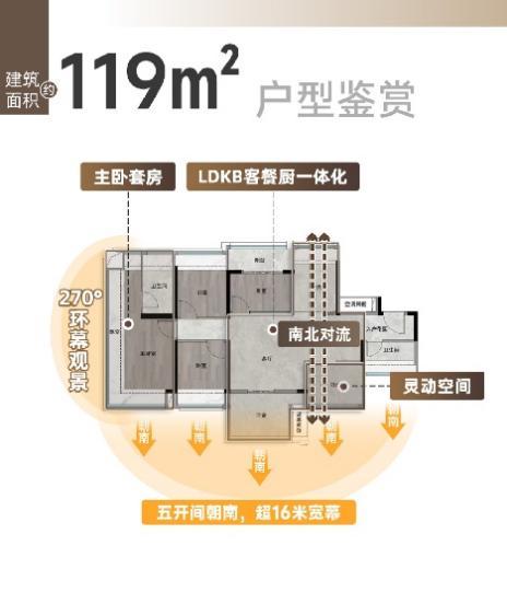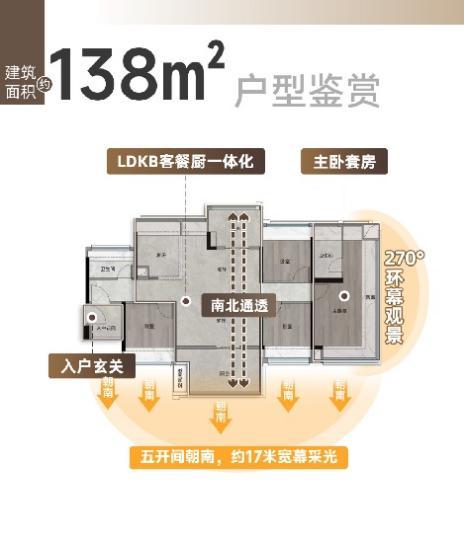 作为白云新城首个新规项目,云樾和鸣主的力产品打造了建面约100-138㎡四空间,全系产品面积使用率超100%,拥有约13-17米超长面宽,配备800库全能收纳体系、LDKB欢聚宽厅、270°环幕观景等设计,这是新规产品力的一次代际跃升。