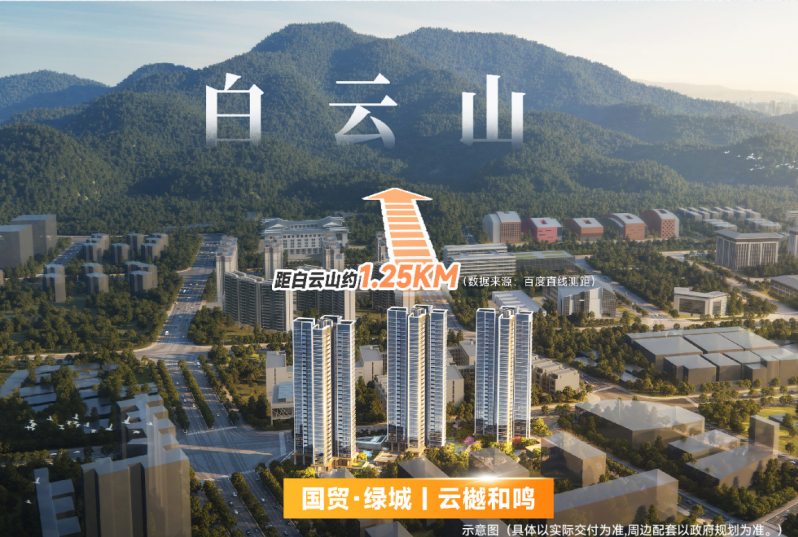 天赋贵壤,立序城芯尽享繁华。云樾和鸣位于白云新城的十字中轴C位——东西向串联完整文脉带,南北向聚合产业与交通经济动脉,东南向直面白云山,拥有约348米云山景观界面,高层单位可同时俯瞰千年云山与繁华城景。
